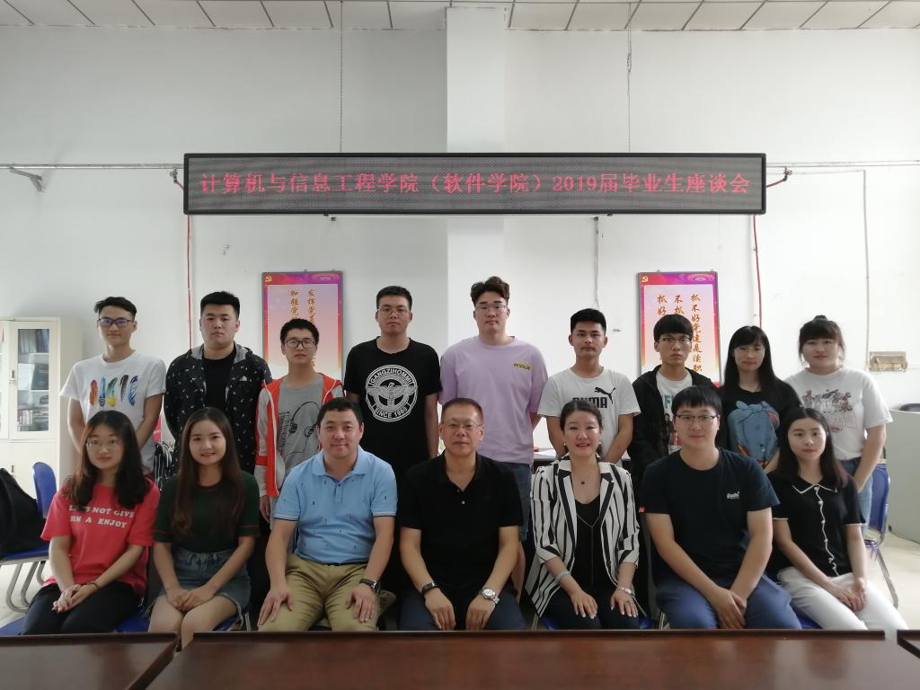 【计算机与信息工程学院】6月14日下午,计算机与信息工程学院召开了2019届毕业生座谈会。学院党委书记吴新文、党委副书记张丽媛以及全体辅导员在学院会议室与2019届本科毕业生代表进行了亲切友好的会谈。座谈会由学工办主任李强主持。