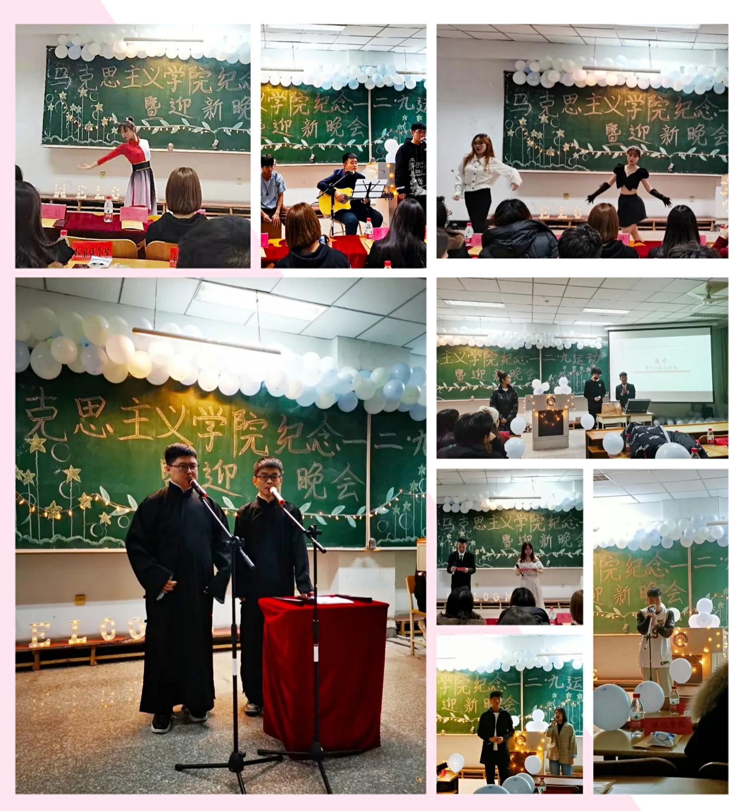 为了迎接2020级新生,纪念“一二·九”学生运动,激励学院学生爱国热情,心寄鸿鹄之志,培养高尚情操,马克思主义学院于12月5日晚在科厦S209举行了“一二·九运动暨2020级迎新晚会”。学院党总支部书记张影、辅导员高阳、2020级班主任张庆、刘明达以及各二级院系学生会文艺部负责人和学院2019级、2020级全体学生参加了活动。