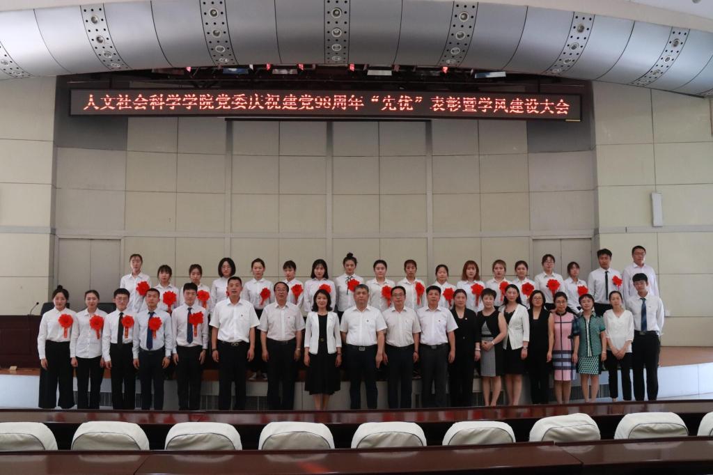 6月26日,人文社会科学学院党委在信息楼报告厅召开庆祝建党98周年“先优”表彰暨推进学风建设大会。校党委组织部副部长、机关党委书记、党校常务副校长唐立国,校党委学工部部长、学生处处长薛立刚,校党委学工部副部长、团委副书记苗雨,人文社会科学学院党委书记陈连军、院长张建华、副院长张元洪,全体教师及学生代表出席大会。会议由正处级辅导员王伟强主持。