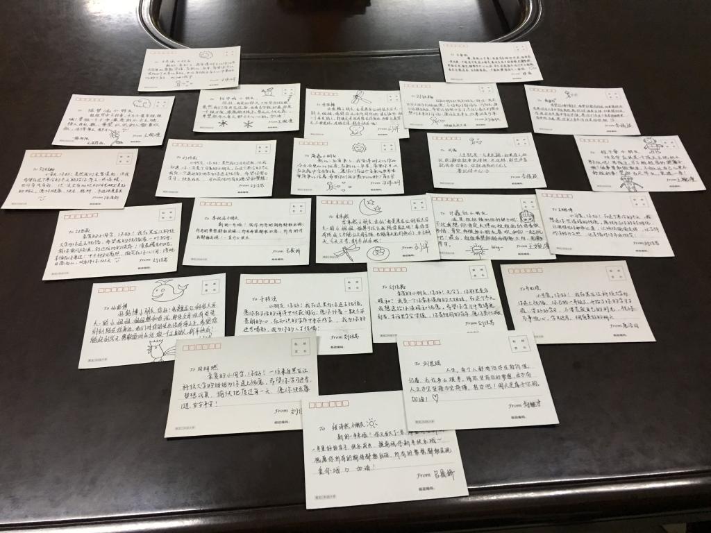 在新的一年即将来临之际,12月27日,理学院武昭阳老师带领理学院分团委和理学院周恩来班的学生骨干,精心准备了新年贺卡。这些贺卡将随理学院募集到的衣物和生活用品一起,邮寄给泥尔河乡中心小学校30名留守儿童。理学院的师生们,用爱写下了一张张祝福的卡片,希望孩子们在凛冬中感受到来自科技大学的温暖,热爱生活、好好学习。至此,理学院圆满完成了“大手拉小手,关爱留守儿童”对接任务,与30名留守儿童完成了全部的关爱对接。