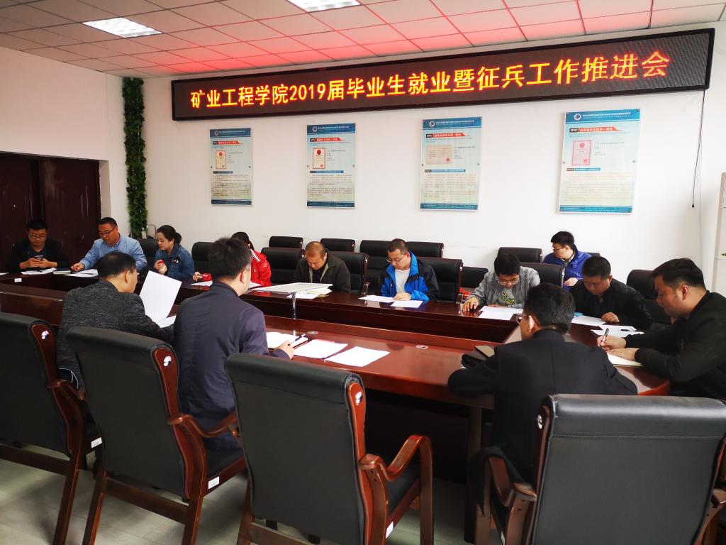 为贯彻落实学校2019年毕业生就业暨征兵工作推进会议精神,5月22日下午,矿业工程学院在学院一楼会议室召开了党政联席扩大会议。学院党政班子成员,系主任,教研室主任、副主任,毕业生班主任,全体辅导员参加会议。会议由学院党委副书记高明星主持。