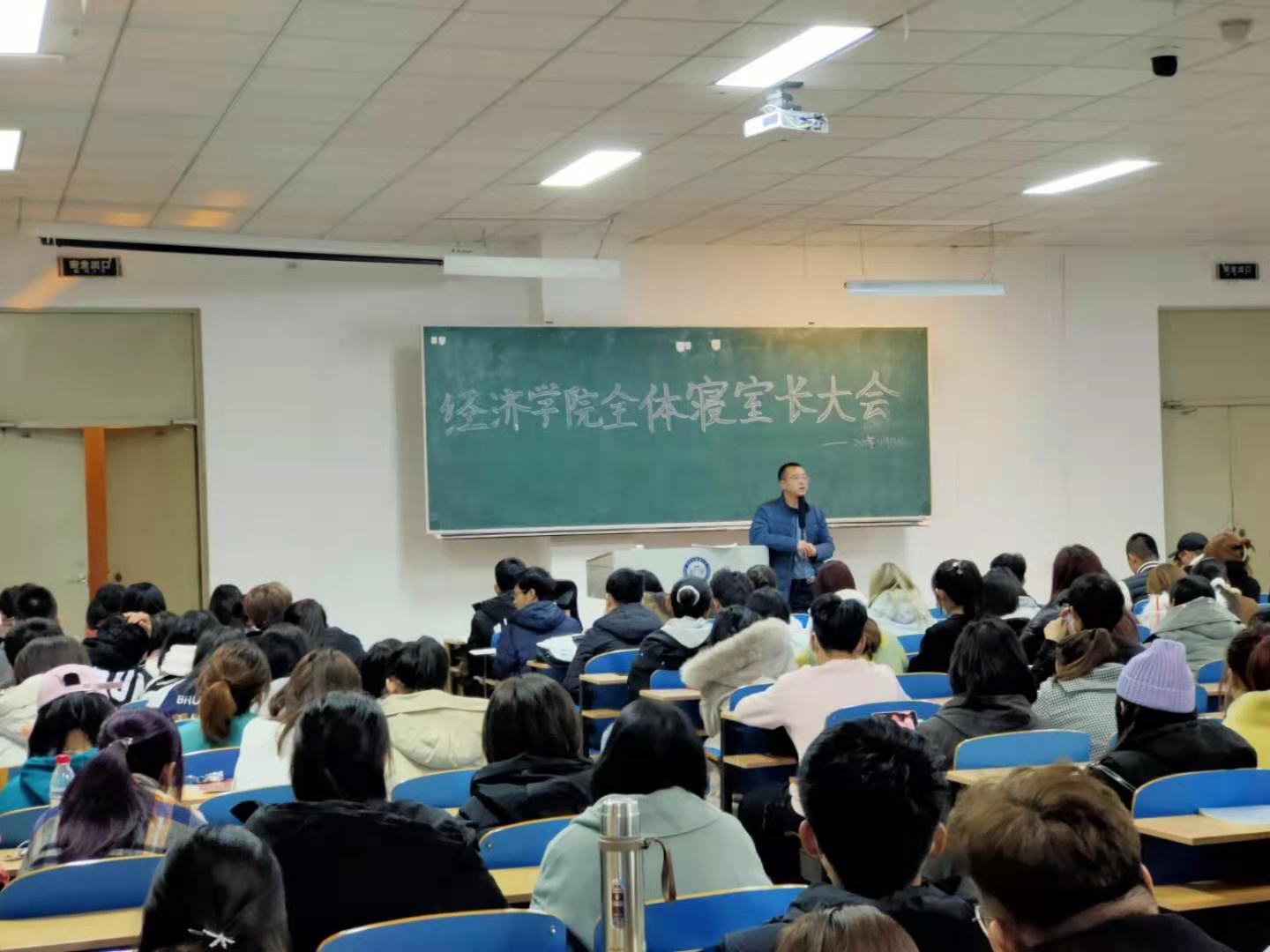为进一步提升全体学生安全防范意识,规范学生日常行为,11月16日晚在主楼EN0203室,经济学院召开了全体寝室长大会。全体辅导员和寝室长参加了本次会议。