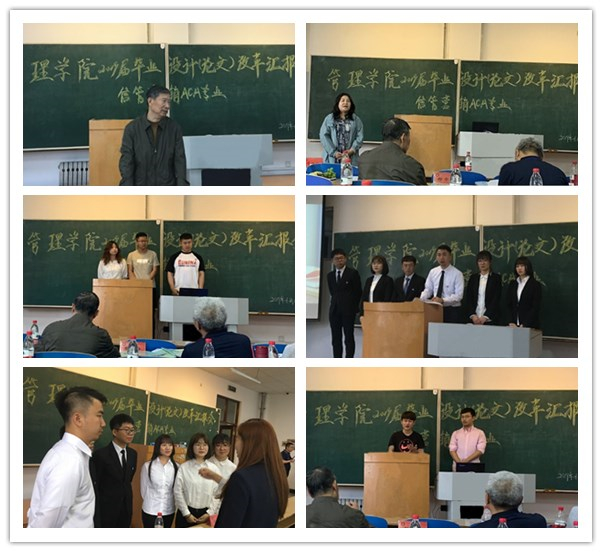 为了切实提高本科生毕业论文(设计)质量,做到真刀真枪做“真论文”,管理学院从2019届开始尝试以各级大学生大赛为载体,实行团队+个人的毕业论文(设计)改革。6月17日,在教学主楼ES0205举行了2019届毕业论文(设计)改革汇报会。本次汇报会,邀请了校内专家原黑龙江科技学院院长,现任校副总督学邢中光,教学质量评估中心主任周广林,管理学院院长谭旭红等校内专家亲临现场指导工作。聘请了校外专家黑龙江中软国际信息技术有限高级工程师毕明华,哈尔滨国云数据科技有限公司技术总监丁娜和原罗克韦尔自动化亚太区CFO(ACCA国际注册会计师)白珊珊给予指导。同时参加会议的还有信息管理与信息系统专业、会计专业、ACA实验班与营销专业的部分师生。