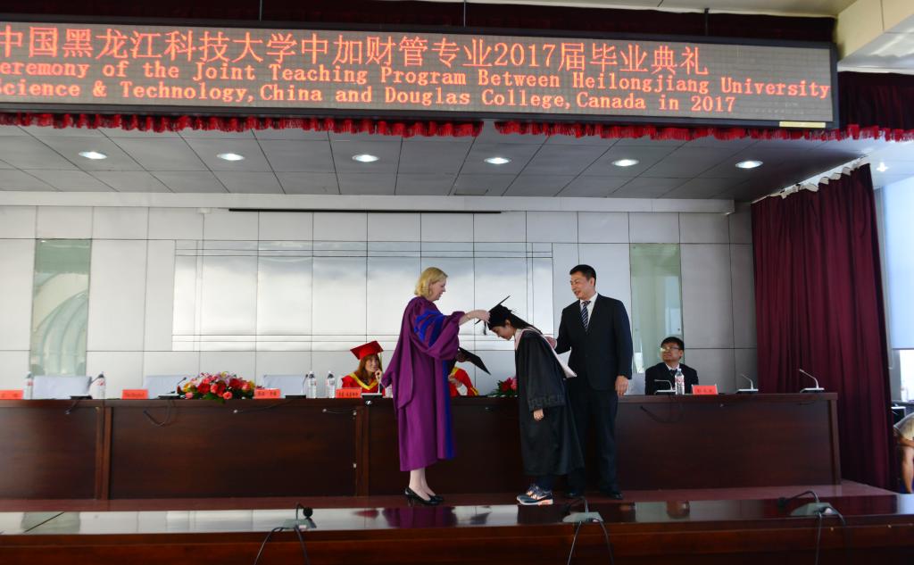 毕业典礼由乐鱼网站_乐鱼(中国)国际合作处处长、国际教育学院院长高郁及道格拉斯学院副校长托尔·博格福特共同主持。毕业典礼在庄严的加拿大国歌和中国国歌声中开始。毕业典礼上加拿大校方领导为乐鱼网站_乐鱼(中国)合作办学项目学生颁发了毕业证书及校长奖学金,道格拉斯学院校长凯茜·丹顿发表了热情洋溢的讲话,典礼结束后与学生合影留念。