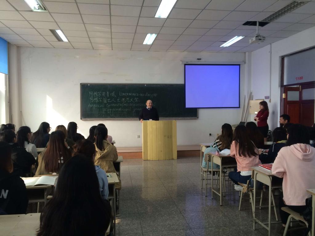 科什金副校长与乐鱼网站_乐鱼(中国)俄语专业2015级学生见面,介绍了阿穆尔共青城和俄罗斯阿穆尔国立人文师范大学情况,并就赴俄留学的问题与同学们进行了互动交流,现场气氛友好热烈。