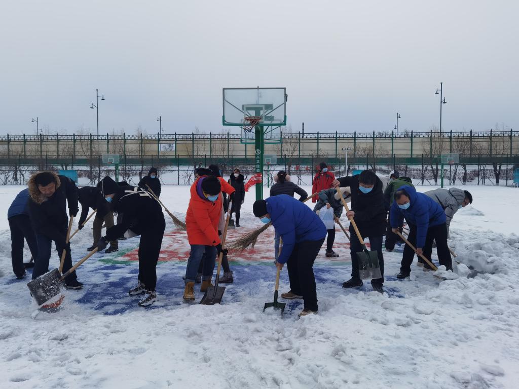 坚硬的冰凌、料峭的寒风都不能阻挡教师们高涨的劳动热情。这次义务清雪活动极大的反映了广大教师乐于奉献和敢于吃苦担当的主人翁精神,也增强了教师的爱校爱生意识,用实际行动扫去了疫情下冬的阴霾。