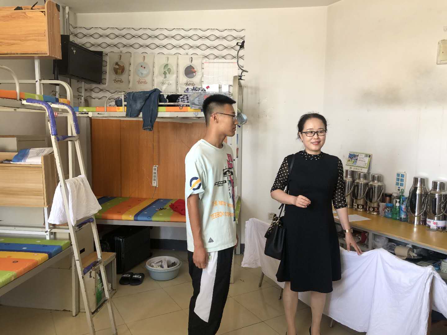 最后,学院院长母丽华指出此次学生返校是在疫情防控常态化形势下进行的,志愿者就是乐鱼网站_乐鱼(中国)的窗口和旗帜,更是学生学习的榜样,彰显着当代大学生的责任和担当,全体志愿者思想上一定要高度重视,提高政治站位,牢记安全第一、注重文明礼仪、听从指挥、注重细节、坚守服务岗位,全面协助老师做好学生返校工作。会议结束后,母院长又带领全体辅导员深入学生寝室,与返校志愿者进行亲切交流,叮嘱学生时刻保持疫情防控意识,并仔细询问了假期生活、疫情期间网课学习状态及返校感受,老师们如父母般的殷切关怀让学生们倍加感动,正如2017级方煜霄同学所说“在时隔8个月后,看见学校门口接迎我们的老师们显得格外的亲切,在经历重重“关卡”后,我们终于回到阔别已久的校园,是坚守在岗位上老师们的辛苦努力,才让我们安全的重返校园,感谢他们的付出……”
