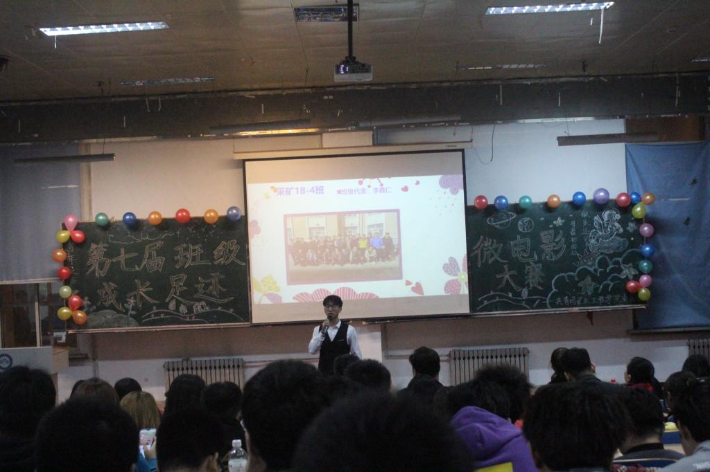 比赛中,各班级代表依次讲解微电影制作的策划初衷、参与人员、中心思想、生活启迪,之后将微电影作品一一展示。影片中有的励志,激励同学们追逐自己的梦想,有的关注生活,告诫同学们对身边的网络诈骗、校园贷等提高警惕,有的表露真情,讲述大学生活中要珍惜纯美的爱情、纯真的友情,给评委和观众们留下了深刻的印象,一帧帧、一幕幕皆是大学校园珍贵的记忆财富。最终测绘18-1班的作品《素年锦时,对饮光阴》、测绘18-2班的作品《贷学生》、地质18-2班的作品《破冰行动》荣获“班级成长足迹”最佳策划奖;地质18-1班的作品《脑锁》、采矿18-2班的作品《悟》荣获“班级成长足迹”最佳创意奖,采矿18-4班的作品《寻》荣获“班级成长足迹”最佳故事奖。