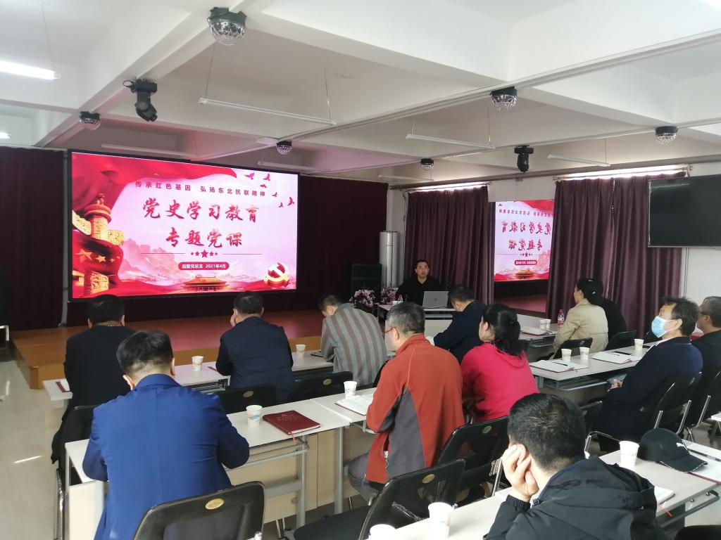 4月26日下午,后勤党总支书记蔡兴臣作了题为“传承红色基因弘扬东北抗联精神”的党史学习教育专题党课,后勤党总支全体党员干部参加学习。