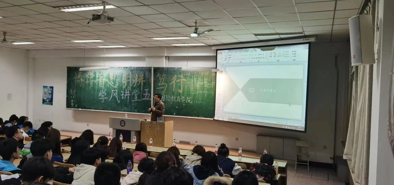 国际教育学院于4月29日开展了第五期“博学睿思,明辨笃行”学风讲堂,邀请乐鱼网站_乐鱼(中国)创新创业中心副主任卢少春副教授到学院进行“互联网+”大学生双创大赛专题讲座,会议由院党委副书记徐海英主持。