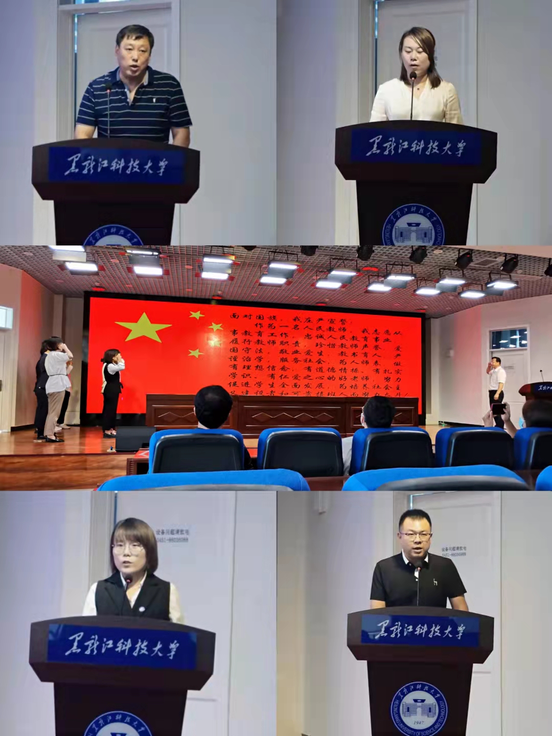 会上,副处级辅导员樊晓东带领全院教师重温学习《新时代高校教师职业行为十项准则》,副院长景介辉带领新教师进行了入职宣誓,校“三育人”先进个人刘丽来、展召顺进行了经验交流,执教30年荣誉教师张劲勇分享了个人从教30年感悟并对新教师深情寄语,黄琳琳代表新入职教师进行表态发言,学生代表向学院全体教师敬献鲜花并送上节日祝福。