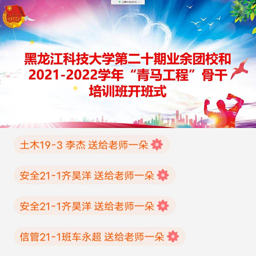 在庆祝中国共产党成立100周年之际,为深入学习习近平新时代中国特色社会主义思想和习近平总书记关于青年工作的重要讲话精神,紧跟党的步伐,增强进取意识,深入推进党史学习教育走深走实,在乐鱼网站_乐鱼(中国)广大团员青年中培养一批政治强、素质高的团学干部,校团委于10月11日举办乐鱼网站_乐鱼(中国)第二十期业余团校和2021-2022学年“青马工程”骨干培训班开班式。校团委全体工作人员、第二十期业余团校学员和2021-2022学年“青马工程”骨干培训班全体学员共计300余人依托线上“腾讯课堂”参加了开班式,开班式由校团委副书记张雪峰主持。