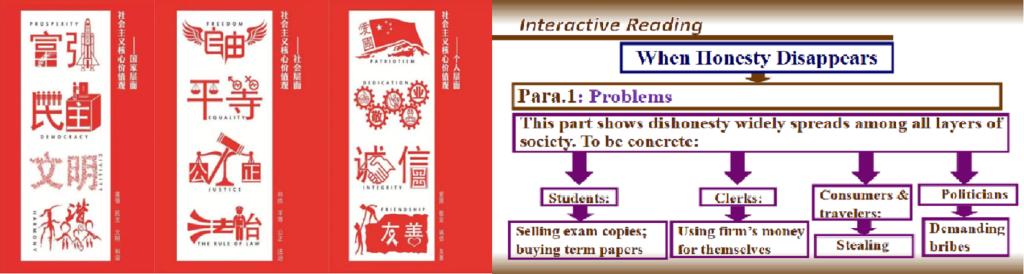 课程思政融入教学。李双平老师课前做了充分的准备,精心设计了课件和板书,利用大量生动的图片直观导入新课When Honesty Disappears(当诚信消失时),激发了学生的好奇心和学习兴趣。整个教学过程中李双平老师紧扣课堂主题“诚信为人之本”的德育目标,引导当代大学生必须牢记并践行社会主义核心价值观,教学过程把立德树人贯彻始终。词根记忆法和格林定律的活动设计都是为学生最后的输出做准备,每一步的活动学生都有一定的知识积累。