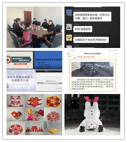 “三多服务”暖人心,抓实常态化疫情防控下民生工程举措。学院坚持服务民生根本导向,有针对性地采取一系列暖人心的举措,服务青年学生成长成才。一是采取多样化的生活保障服务措施。召开专题会议,增设专项邮箱和电话,畅通诉求渠道,及时整理和反馈学生生活意见,尤其为在校隔离和健康观察的学生订餐、送餐、收发快递、购买生活用品等。二是采取多彩化的校园文化建设措施。通过爱国歌曲传唱、礼赞传统文化书画作品征集、唱响新时代音乐作品征集、告白祖国祝福语征集、“初心筑梦,建党百年”手工作品征集、“我与祖国共成长”主题征文、科研立项评审、堆雪人大赛等,发挥校园文化在育人工作中的作用。三是采取多元化的就业创业服务措施。坚决落实“一把手工程”,加强组织领导,召开就业推进和动员会议5次,邀请企业到校招聘,发动校友资源提供就业岗位,积极拓展就业渠道,搭建对接平台,就业率达到31%,同比增长2%。