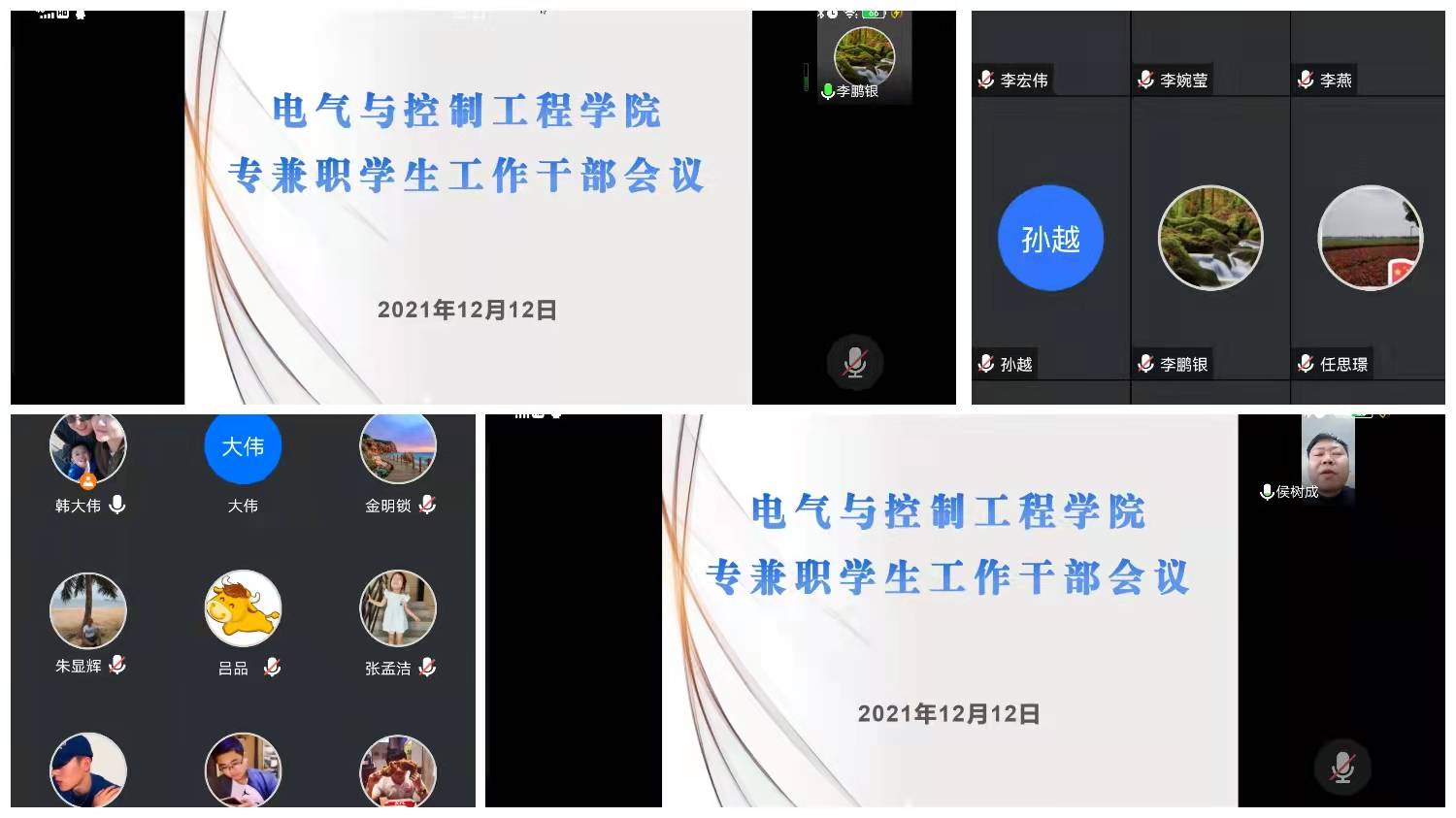 为深入贯彻学校2021年秋季学期期末学生工作会议精神,全面落实“三不一提高”和必须守住“四个底线”的工作要求,12月12日,电气学院利用腾讯会议线上组织召开了专兼职学生工作干部会议,学院党委书记李鹏银出席会议,学院全体辅导员、班主任、各学生组织主席团成员参加会议,会议由学院党委副书记侯树成主持。