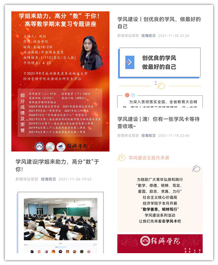 心需求,教育宣传到位。学院线下充分发挥课堂教学对大学生心理健康教育的重要作用,通过专题授课与品牌活动相结合的方式,加强心理健康管理的针对性和指导性。同时,依托“经海拾贝”微信平台,将心理学的知识性、趣味性、启发性与普遍性充分融合,以达到最大限度的占领学生心理阵地、最大范围的覆盖到每一名学生、最大收益的提高学院学生心理健康素质的目标。