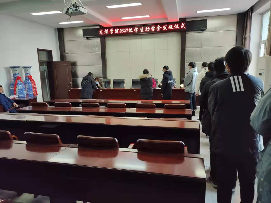 签发仪式前,副院长张永利将签约时的注意事项、填写规范等内容向班主任老师逐一说明,并组织辅导员和班主任老师为317名2021级学生发放了每人500元的龙煤助学金。