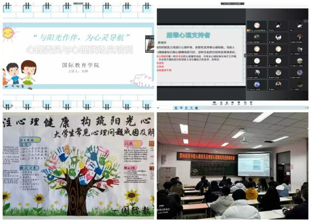 为进一步推进新学期学院心理健康教育工作开展,积极引导学生重视心理健康,了解心理健康知识,增强心理保健意识,切实保障青年学生的生命安全和身心健康。通过开展“与阳光作伴,为心灵导航”为主题的心理委员及寝室心理联络员技能培训会,激发了学生的责任感和使命感,进一步增强了工作的实效性,为学院心理健康教育工作注入了一针强心剂;通过开展室外心理团体辅导活动,有效帮助学生积极应对“应急管理期”可能出现的心理困扰及不良情绪和行为;通过开展“聚心凝爱,向阳逐梦”心理情景剧选拔赛,更加深入地了解对方的心情和立场,感受对于学生在家庭生活、学业问题、休闲时光、交友等方面的起到互相启发、互相支持的作用。