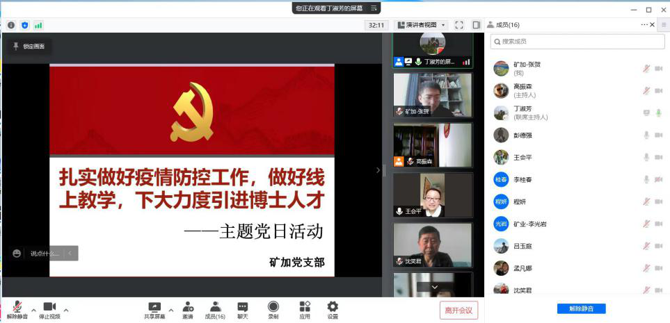 矿物加工工程系教师党支部,以高度重视引进博士人才,扎实做好疫情防控工作,做好线上教学工作为题展开深入交流,分享疫情期间线上教学宝贵经验,实用的策略与巧妙的方法,纷纷表示要在提高教学质量,调动学生课堂参与积极性,疏导学生不安情绪上下功夫,通过多途径、多渠道联系博士人才,落实人才引进工作。