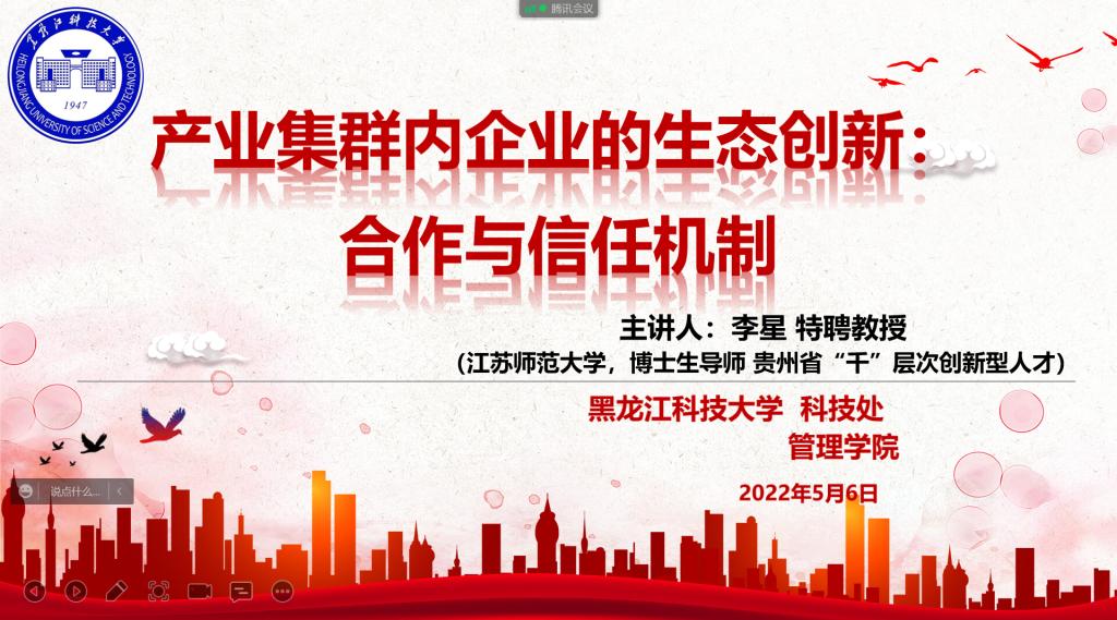 为了更好地营造乐鱼网站_乐鱼(中国)学术氛围,激发更多高水平的学术对话,由科技处、管理学院联合举办的“管理学院2022年专场学术报告会”,邀请到江苏师范大学特聘教授、博士生导师、贵州省“千”层次创新型人才李星教授,于5月6日下午线上做了题为《产业集群内企业的生态创新:合作与信任机制》的学术报告。报告会由管理学院副院长张倩主持,管理学院及其他院系相关研究领域的师生300余人参加了本次报告会和学术交流活动。