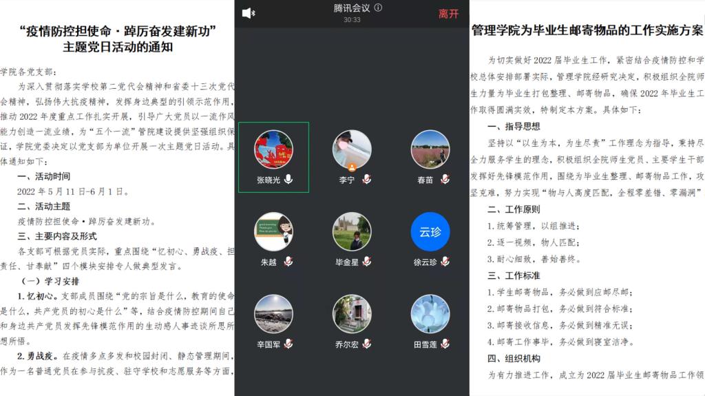 ——精心谋划早启动,主题党日生光辉。5月11日,学院党委开展了以“疫情防控担使命·踔厉奋发建新功”的主题党日活动,号召全体师生党员积极参与到志愿服务活动中,为学院扎实做好疫情防控工作和毕业生工作贡献力量。同时,制定《管理学院为毕业生邮寄物品的工作实施方案》,成立邮寄物品工作领导小组和58名教师党员志愿者、248名学生党员和积极分子志愿者组成六支工作突击队。为扎实做好为毕业生邮寄物品工作奠定了坚实基础。