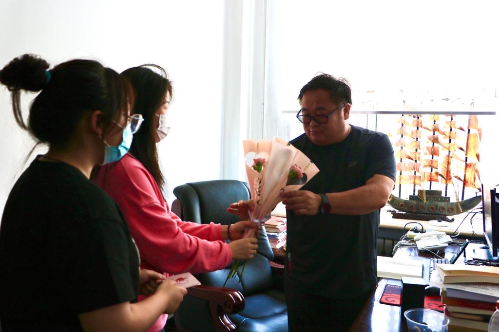 朵朵鲜花传真情,句句祝福暖师心。学院青年学生将一封封手写贺卡,配以一束康乃馨为老师送上最诚挚的节日祝福。一朵朵美丽的康乃馨代表着学生们对老师“用爱心浇灌成长,用知识托举希望”勤勉耕耘育桃李的敬意,一句句发自内心的祝福更是对打造中华民族“梦之队”的“筑梦人”最淳朴的感激。