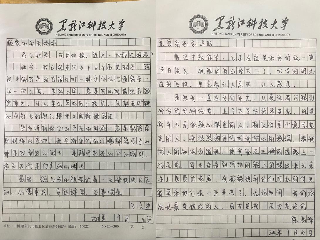 学院特组织“一封家书”活动,青年学生以书信的形式表达对家人的思念,把自己的成长分享给自己的家人,“儿行千里母担忧”父母无时无刻关心孩子的成长,同学们也通过书信的方式将自己的成长经历诉说给父母,写出心中对家人的思念!