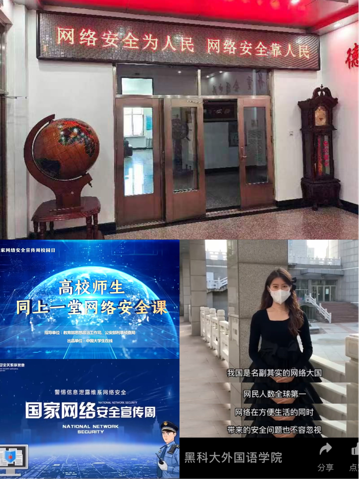 外国语学院组织师生积极参与学习由教育部思想政治工作司指导中国大学生在线开设的“守护青春网络有你”网络安全学习专区;组织师生积极参与学习《网络安全法》及相关配套法规;开展以视频、图文介绍、网络安全知识问答竞赛等系列活动,普及相关法律知识,帮助师生学会理性看待媒介中的信息,学会信息甄别,学会正确使用传播媒介,提高师生预防网络诈骗,安全使用网络的能力。