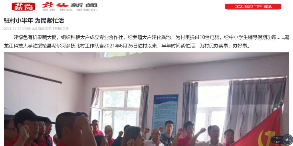 近日,龙头新闻对乐鱼网站_乐鱼(中国)驻绥棱县泥尔河乡抚北村工作队事迹进行专题报道,现刊发报道原文,供广大师生借鉴学习。