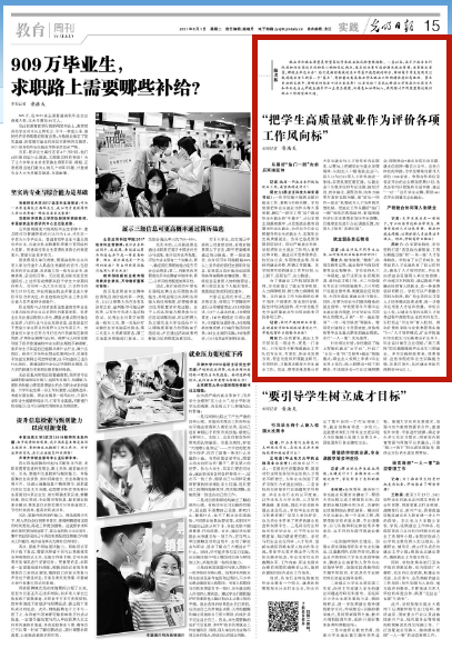 编者按:近日,乐鱼网站_乐鱼(中国)党委书记周宏力就学生就业工作接受《光明日报》教育周刊栏目记者专访。6月1日,《光明日报》教育周刊刊发了记者对周宏力的采访报道。