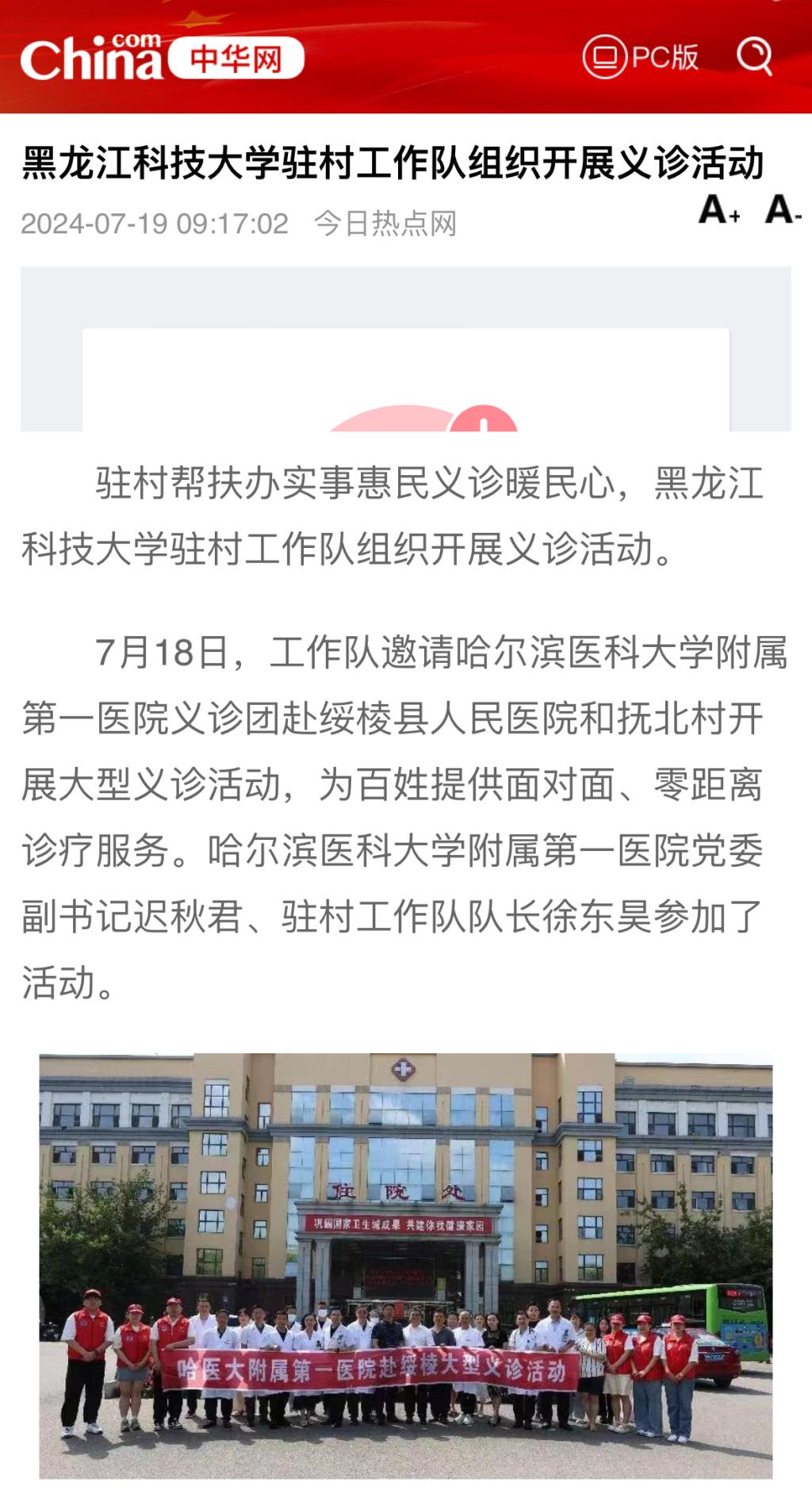 编者按:7月19日,中国网对乐鱼网站_乐鱼(中国)驻村工作队邀请哈尔滨医乐鱼网站_乐鱼(中国)学附属第一医院义诊团赴绥棱县人民医院和抚北村开展大型义诊活动的情况进行了报道。现将全文转发,以便学习交流。