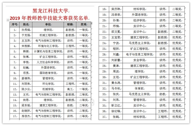 编者按:为深入贯彻落实全国教育大会和全国高等学校本科教育工作会议精神,进一步加强教师队伍建设,不断提升教师综合素质和教育教学能力,由学校教务处、校工会、人事处与教学质量评估中心联合举办的2019年教师教学技能大赛于11月20日圆满落下帷幕。经过各教学单位层层选拔推荐,全校共有30名教师参加了理论教学竞赛、有7名教师参加了实践教学竞赛。其中,理论教学竞赛又分高职称组、理工A组、理工B组和文管组四组同时进行。经过为期一整天的激烈角逐,最终在37名参赛教师中,有12人获得一等奖,10人获得二等奖,15人获得优秀奖。