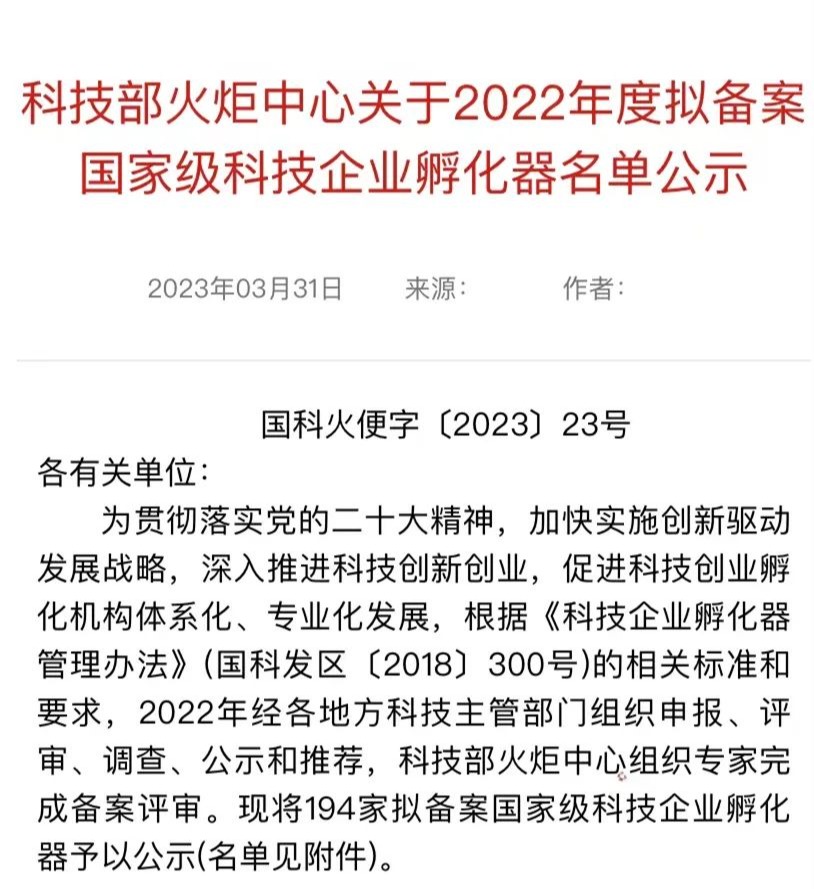 11/ 2023-05乐鱼网站_乐鱼(中国)科技园成功认定国家级科技企业孵化器 -