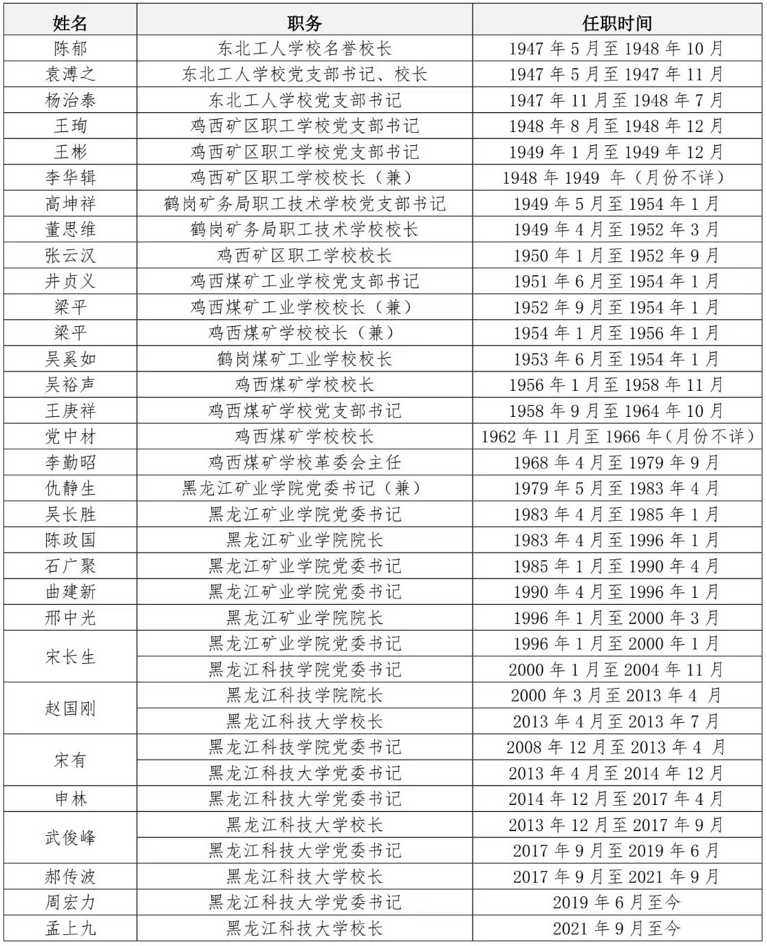 乐鱼网站_乐鱼(中国)历任校长、书记任职年表